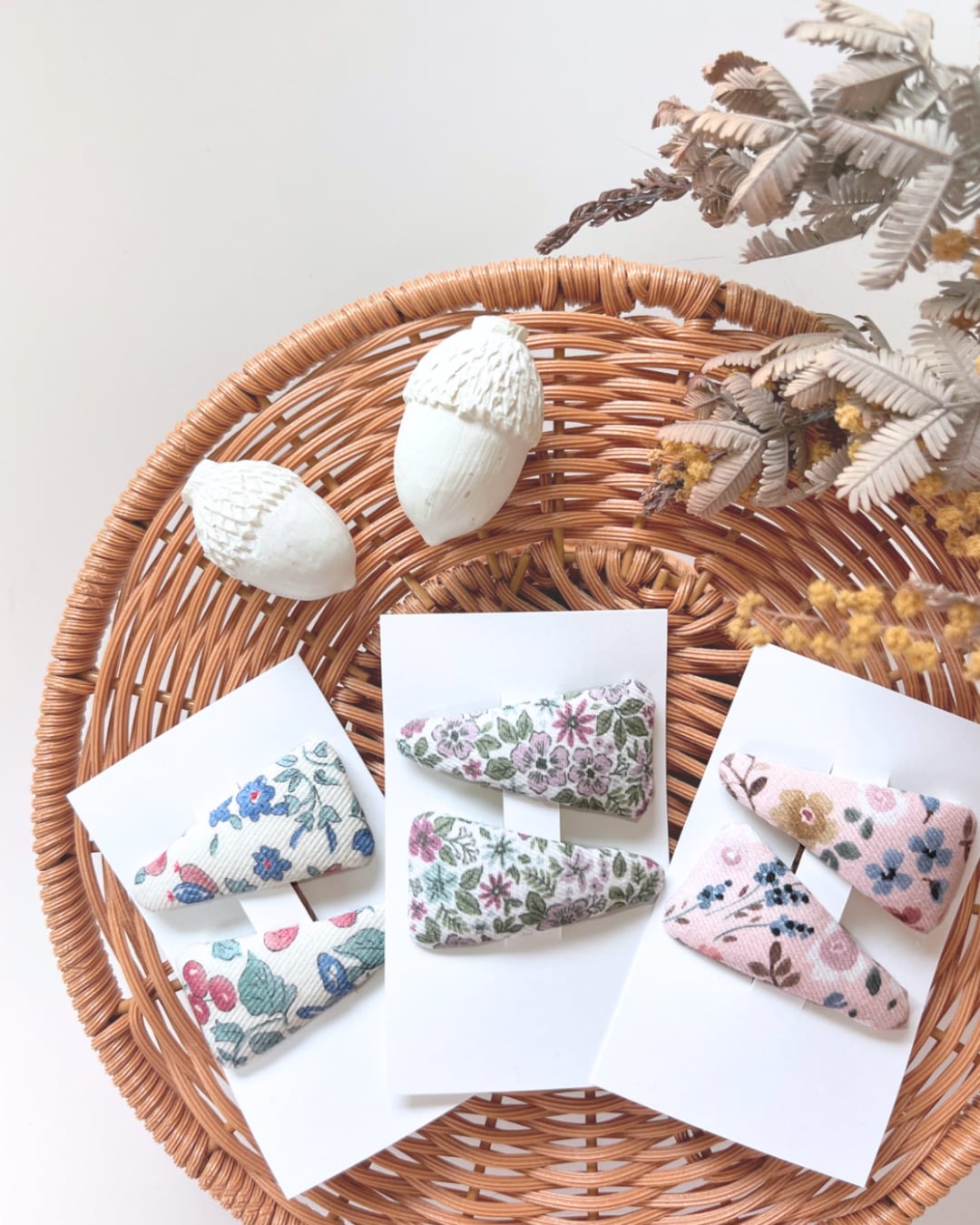 スペインPi&Paから仕入れた生地を使って、リボン作家Citron_berryさんに1つ1つ丁寧に作って頂いたハンドメイド作品。
