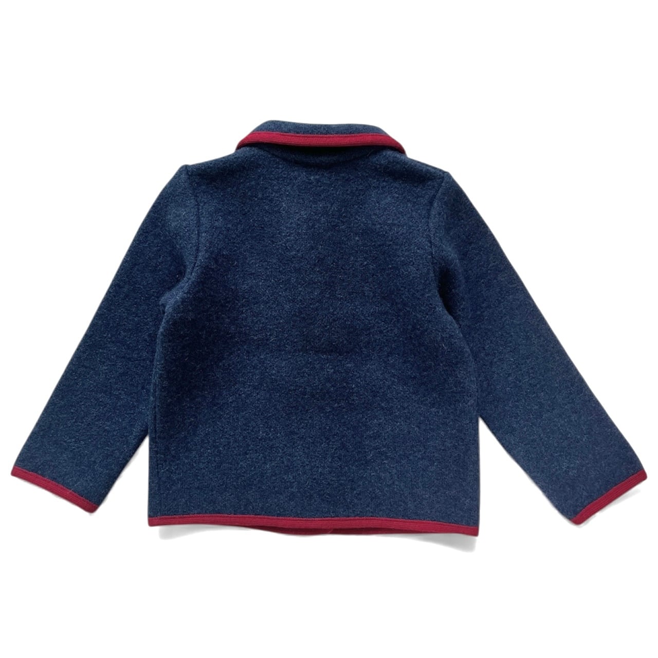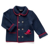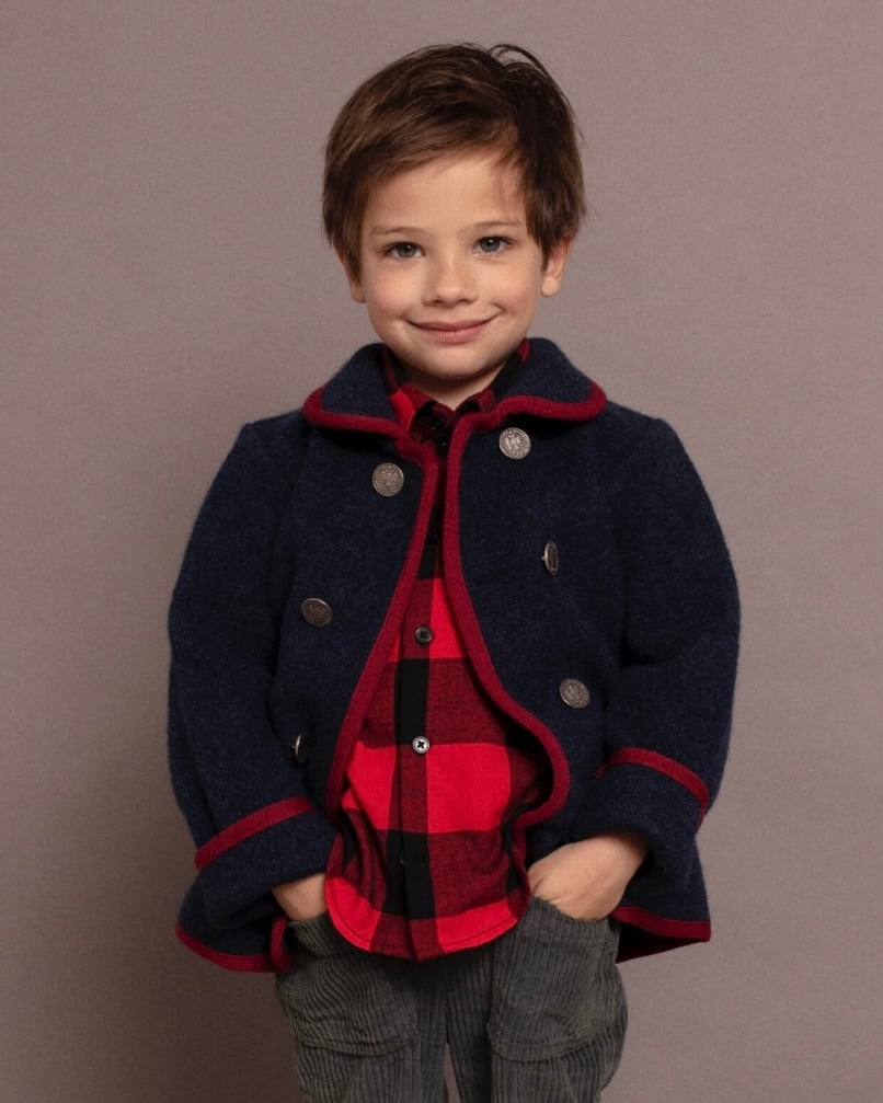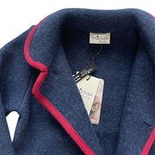 ネイビーに上品なレッドのパイピングが映える、クラシカルなショートコート。