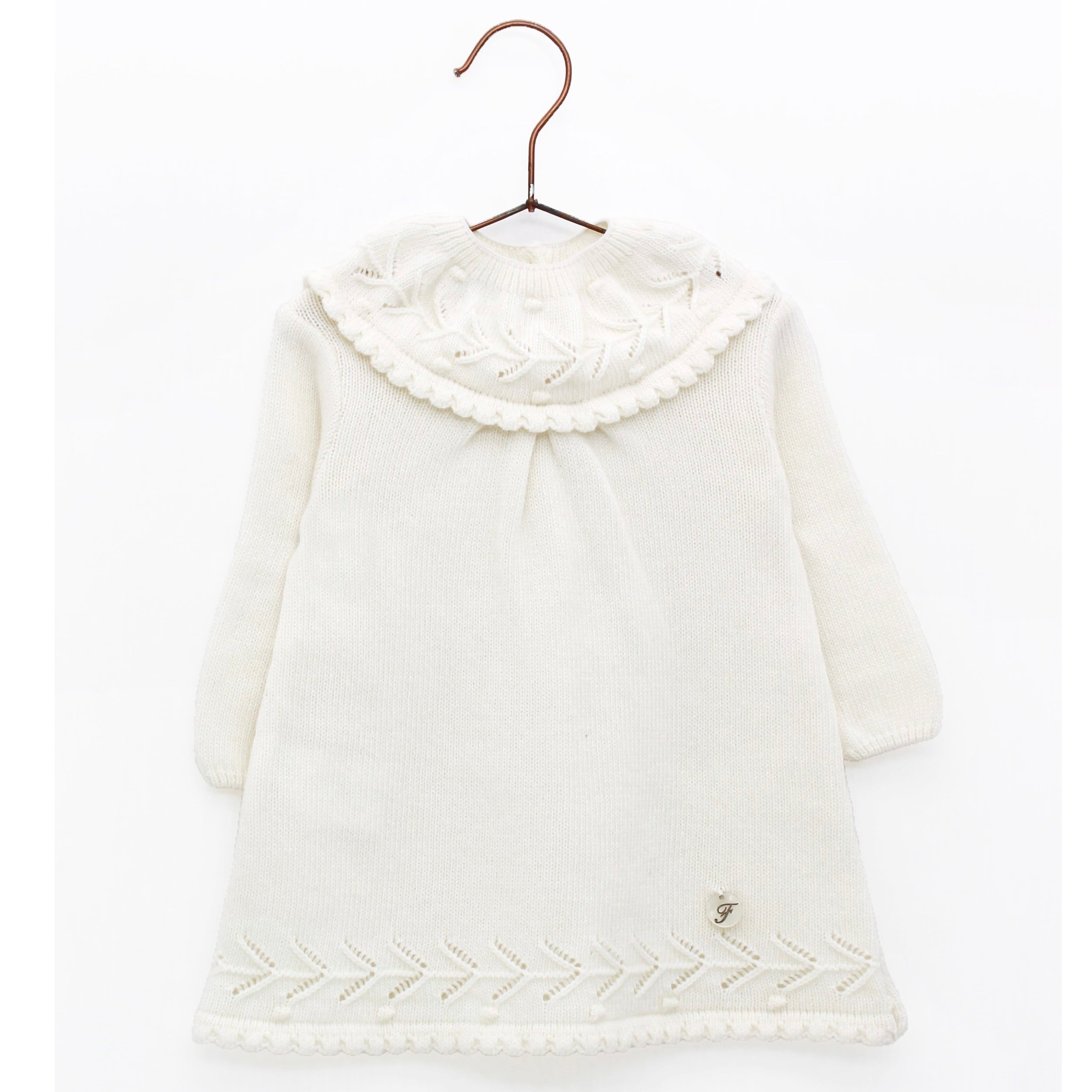 優しいアイボリーカラーがお子様の魅力をグッと引き立ててくれる、滑らかな肌触りのワンピース。
